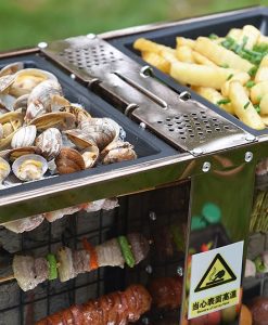 Thiết kế tiện lợi với 2 khu vực: nướng xiên que và chiên xào.