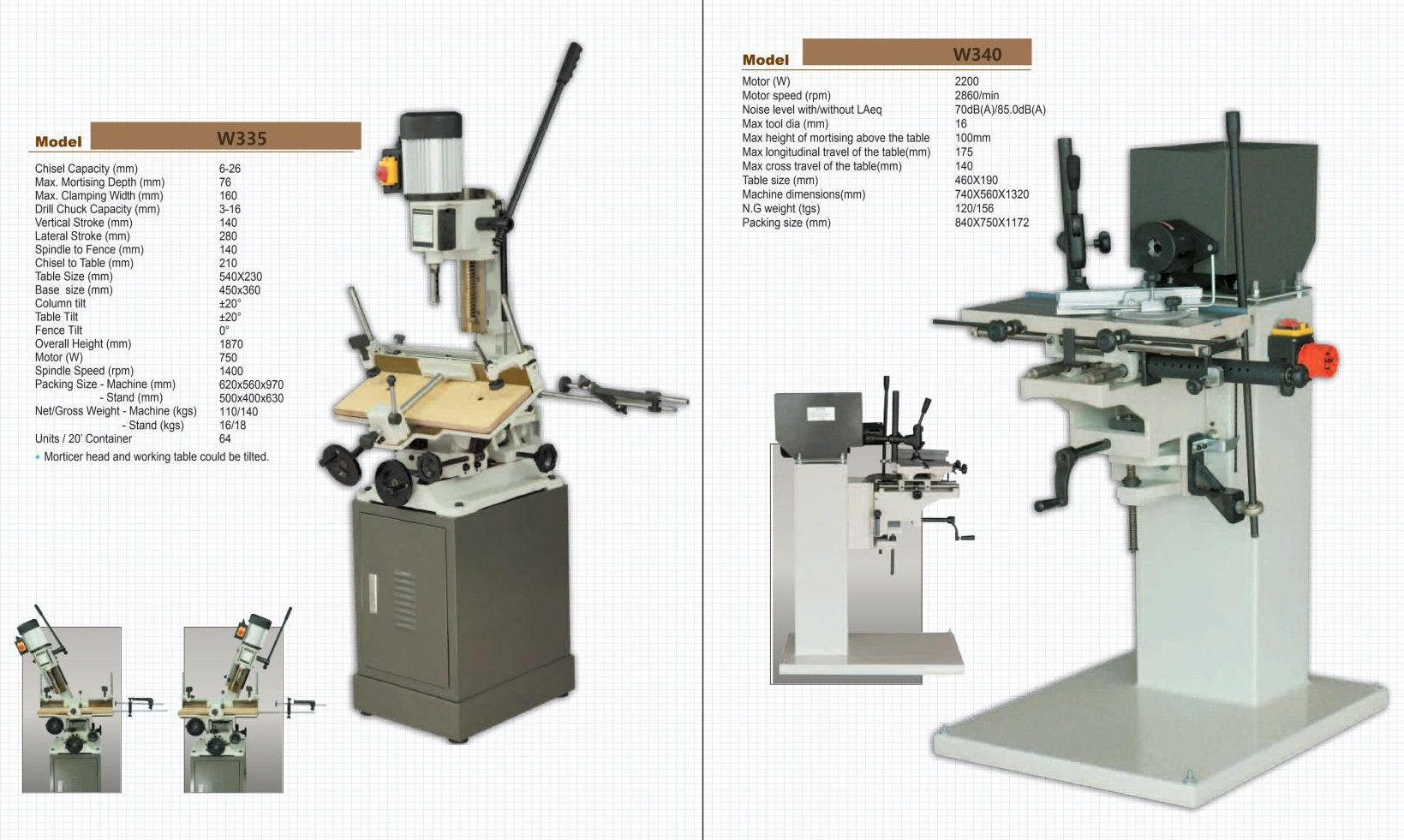 Morticer machines – Các loại máy đục gỗ, máy xọc gỗ, máy xẻ rãnh gỗ W335 W340
