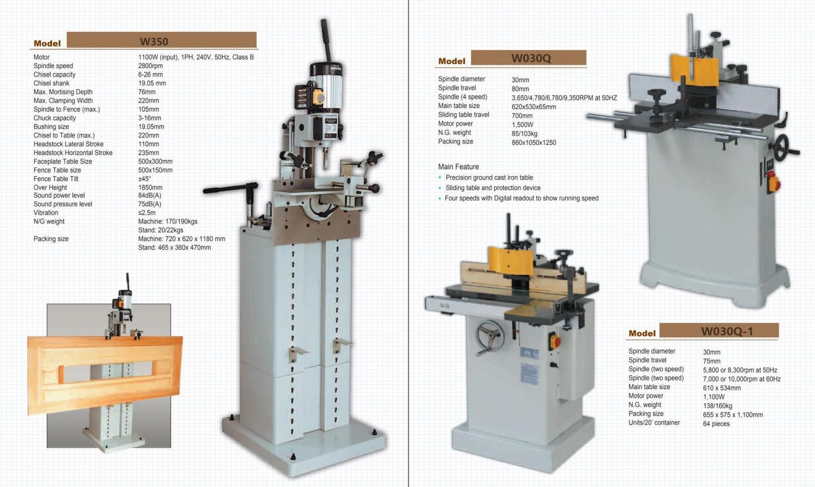 Morticer machines – Các loại máy đục gỗ, máy xọc gỗ, máy xẻ rãnh gỗ W350 W030Q W030Q-1